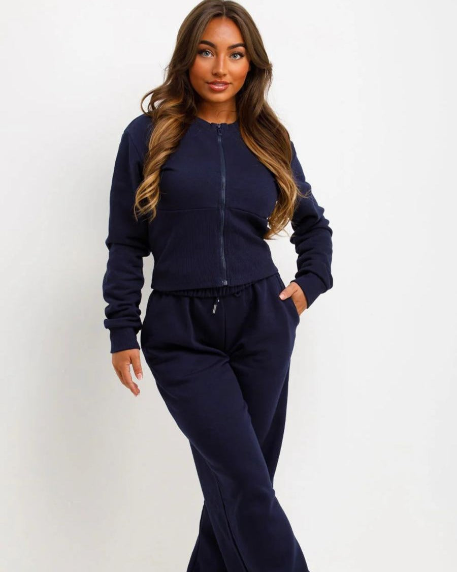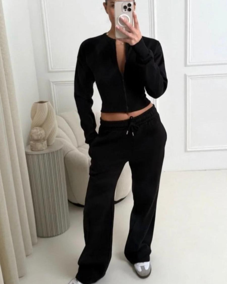 • Zip-Up Cropped Jacket – Adds a modern, sporty touch with a flattering fit.